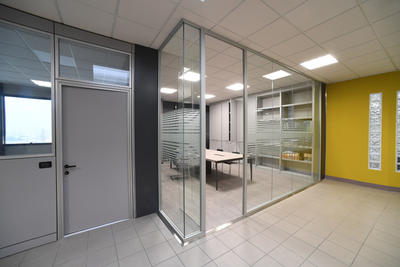Orizzontali o verticali, sono realizzate con profilati di alluminio estruso e corredate di guarnizioni idonee. All’interno delle porte e delle pareti vetrate possono essere